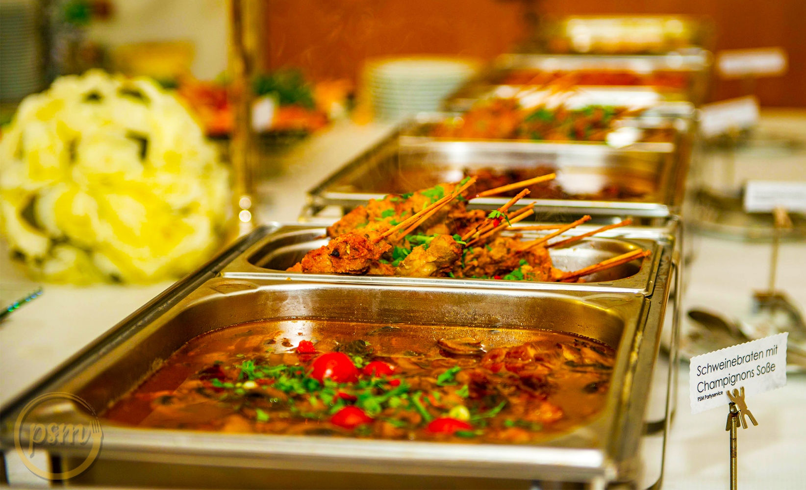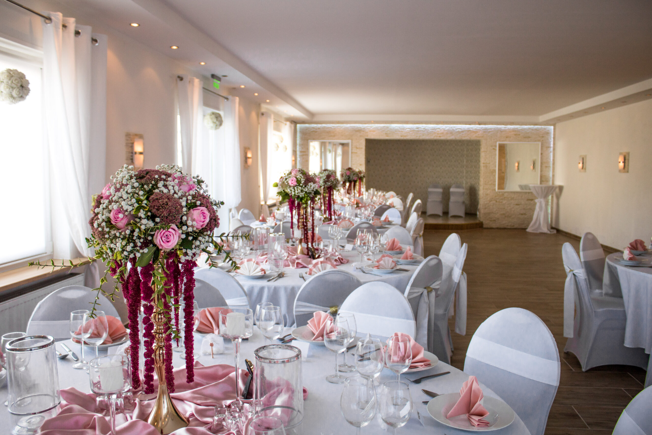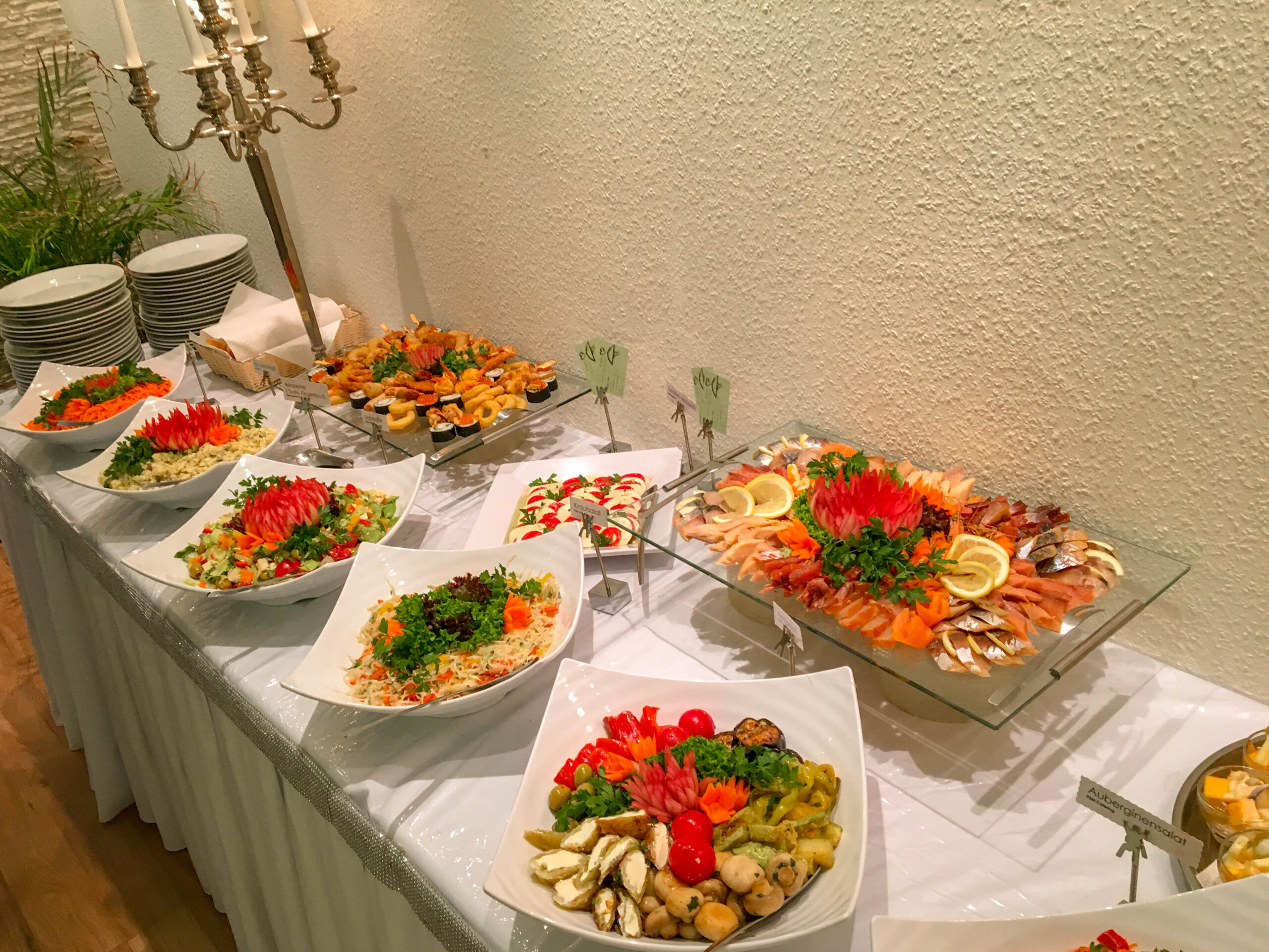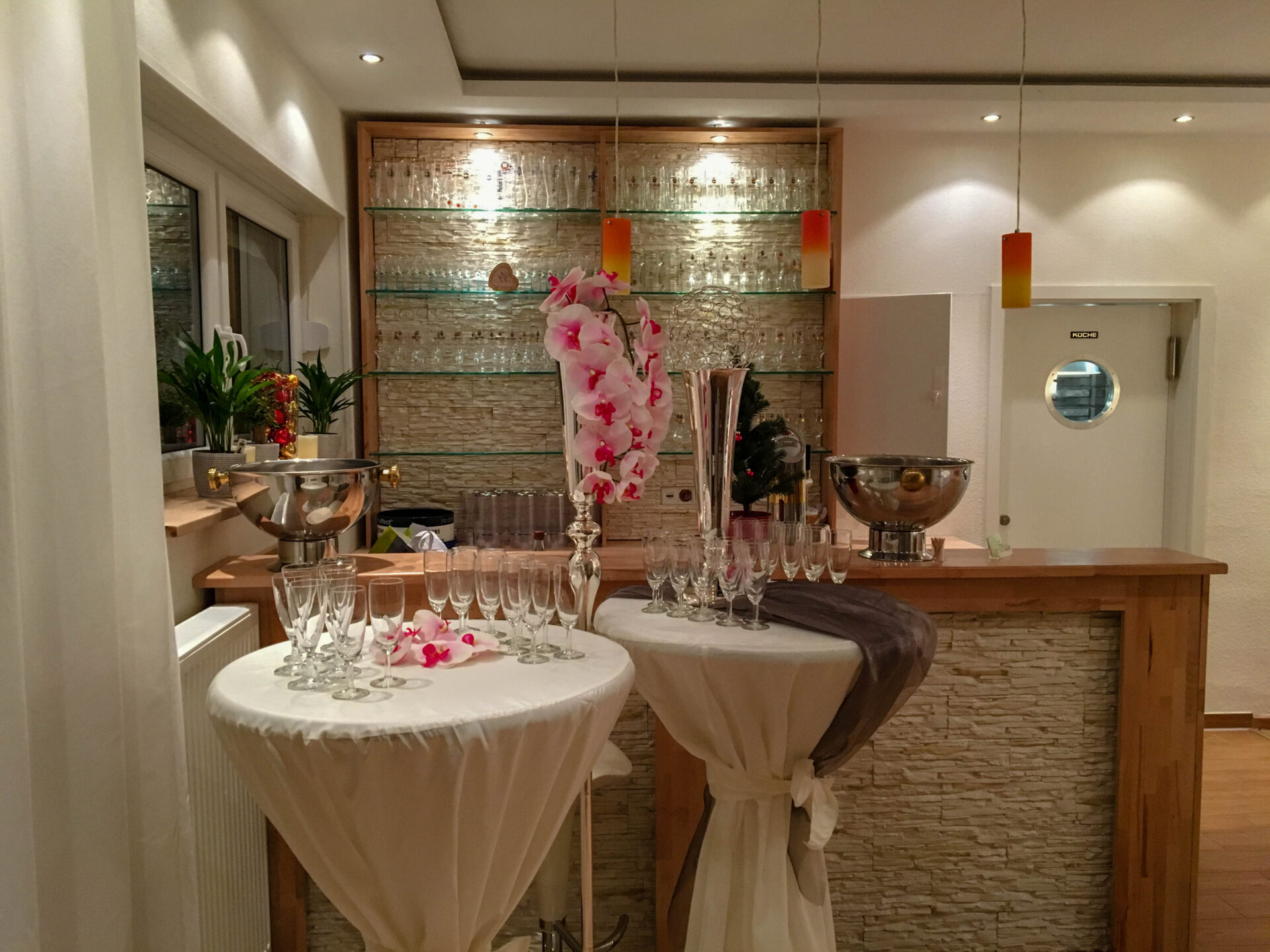 Feiern Sie in unserer modernen Eventhalle und genießen Sie ein komfortables Rundum-sorglos-Paket: Location, üppiges Buffet, alkoholfreie Getränke, Bar mit Zapfanlage, Service und komplette Ausstattung – alles aus einer Hand.